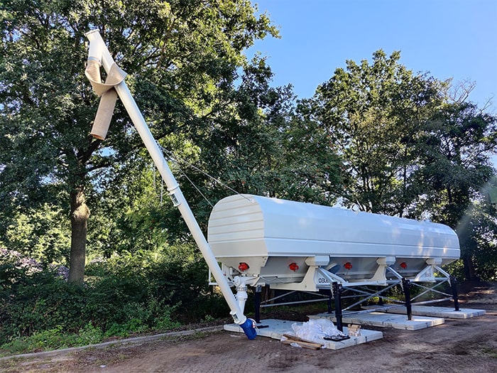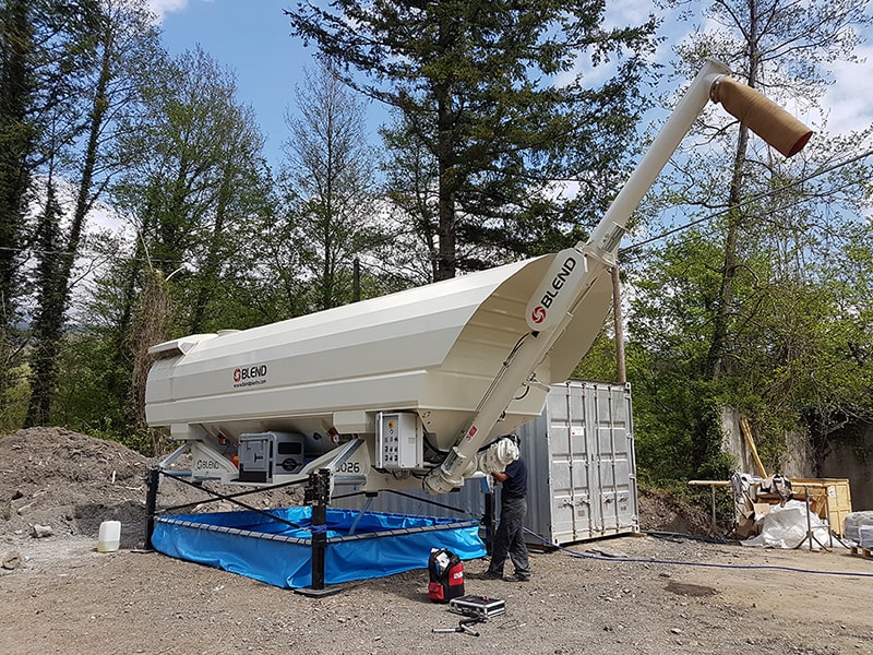 Blend horizontal silos are the ideal complement for our mobile concrete mixing plants. They are extremely versatile, manageable and mobile. No authorization for installation is needed as foundations are not necessary. Flat & adequately solid ground is sufficient. Thanks to the lifting jacks (optional) the silos can be loaded and unloaded on trucks without cranes. When the Blend mobile plant is used as a fixed concrete batching plant, the silo can be connected to the Blend control unit, hence avoiding the need to stop the plant during cement loading, with a consequent increase in concrete production. The quantities of delivered and residual cement can be kept under control using the optional weigh cell system. If the Blend plant is used as a permanent fixed batching plant, we recommend one of our vertical cement silos, a more economical and efficient solution.